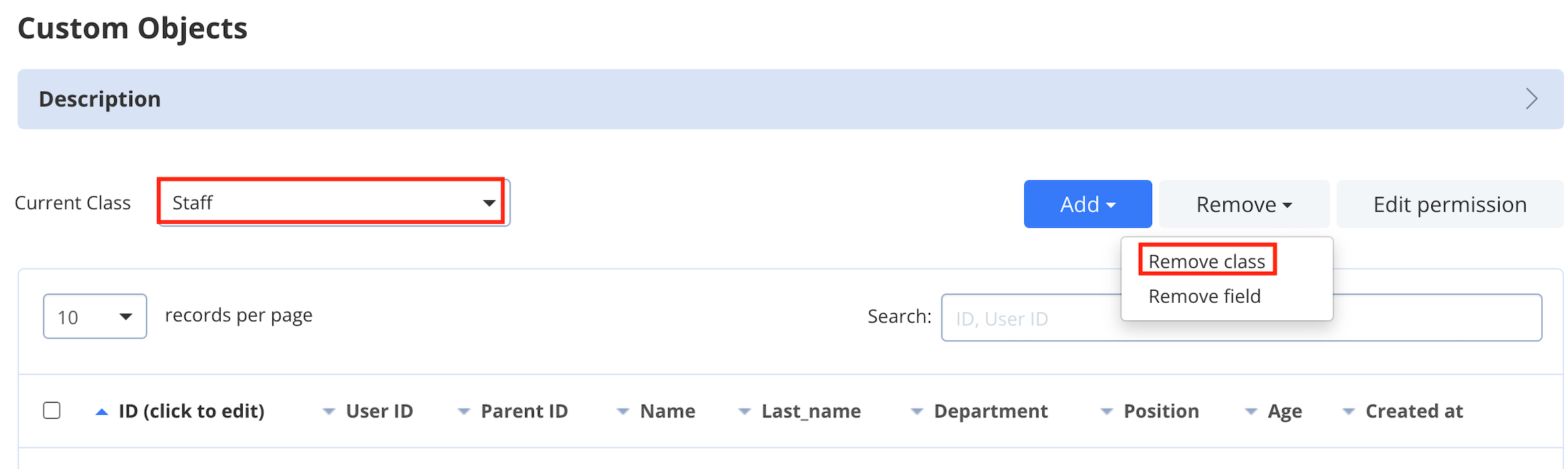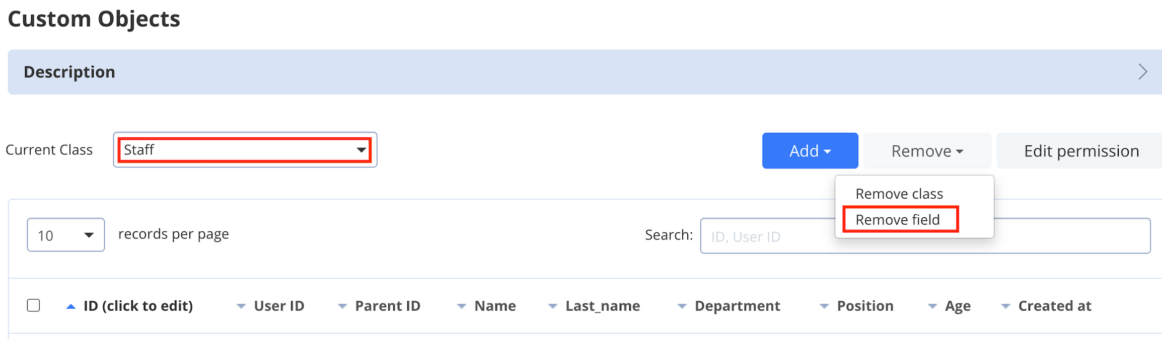 To remove a field from a class, follow the steps below:- Navigate to the Dashboard => YOUR_APP => Custom page.