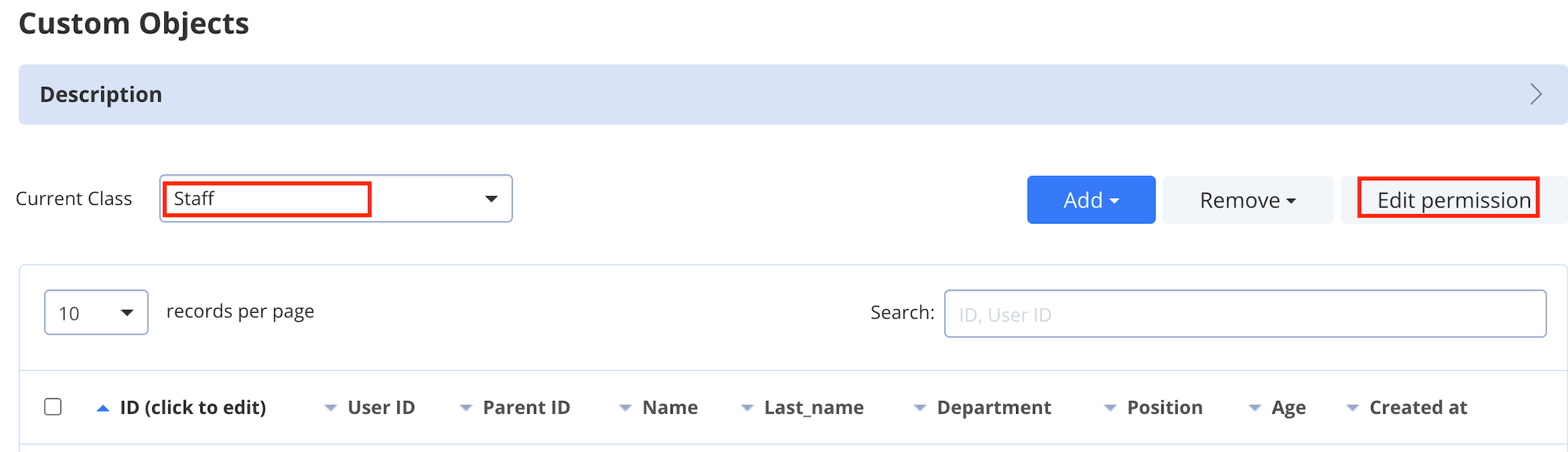 A record is an entity within the class in the Custom Objects module that has its own permission levels. All permission levels except for the Not Allowed are available for the record and there are only three actions available and applicable for the record: Read, Update, and Delete. See this section to learn more about permissions. Default Record permission schema is used while creating a class:- Read: Open