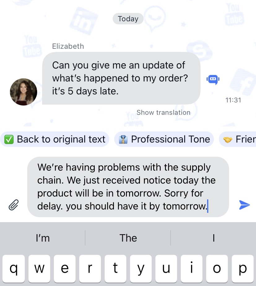 - Professional tone: This will allow you to edit messages to sound more formal, using technical language, clear sentence structures, and maintaining a respectful tone. This would avoid colloquial language and ensure appropriate greetings and signatures.
