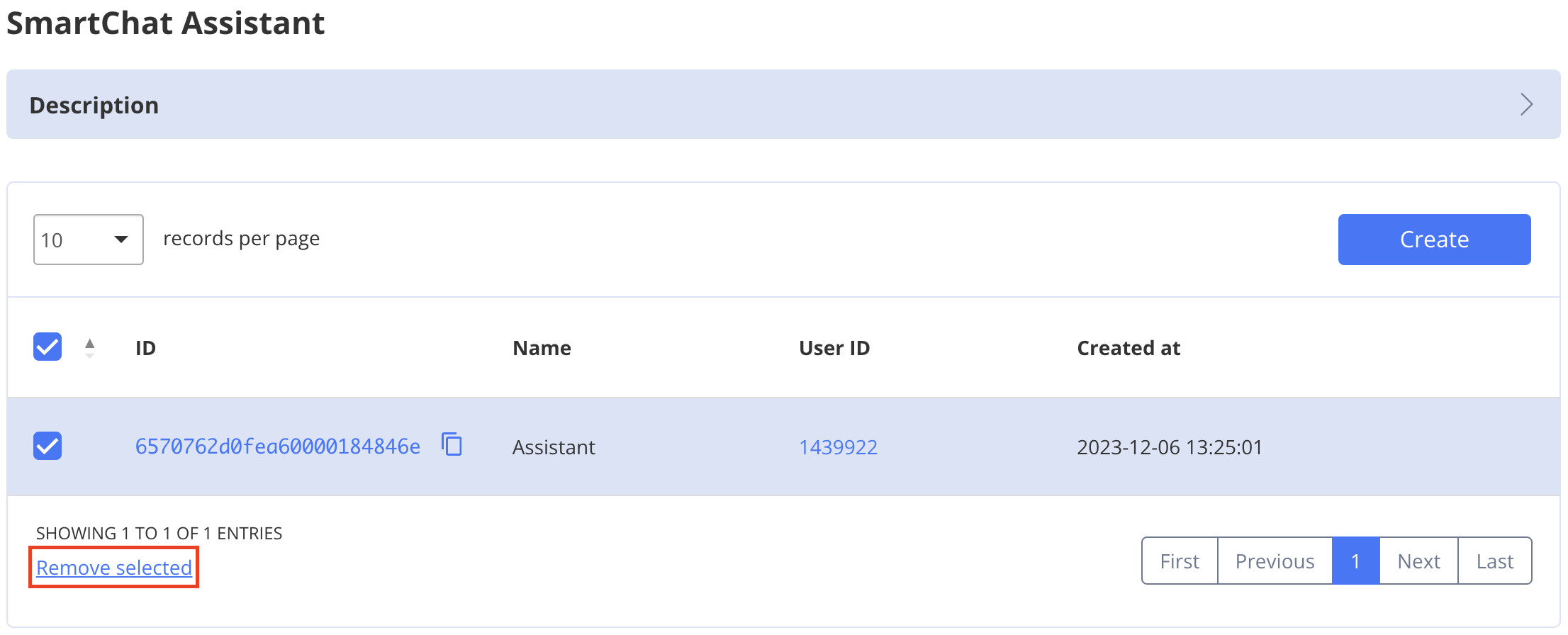 - Check the SmartChat Assistant you need to delete.