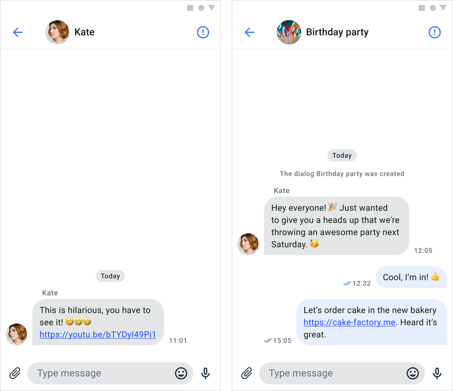 | Group dialog | Private dialog |