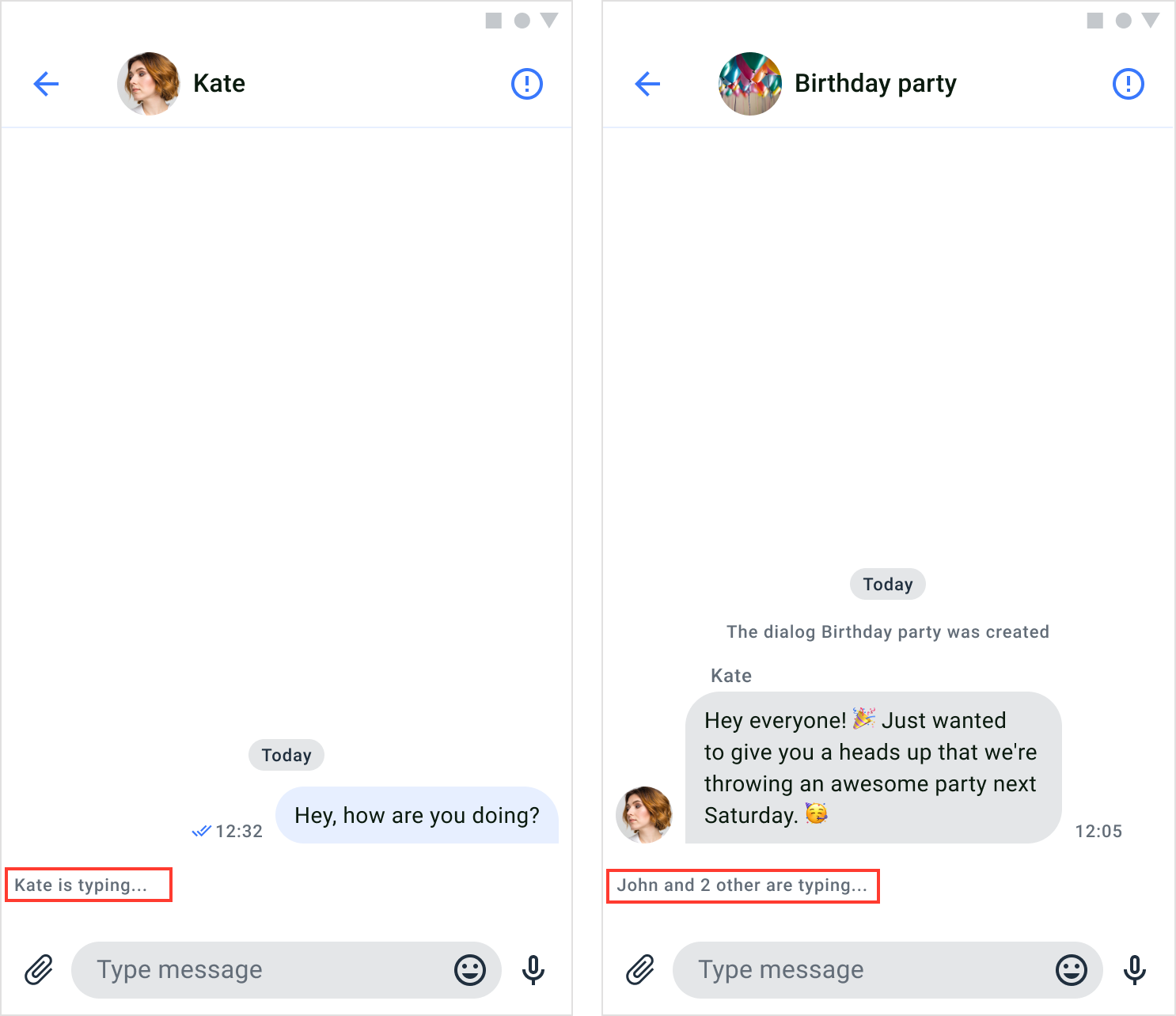 Typing indicator | ✓ | ✓ |