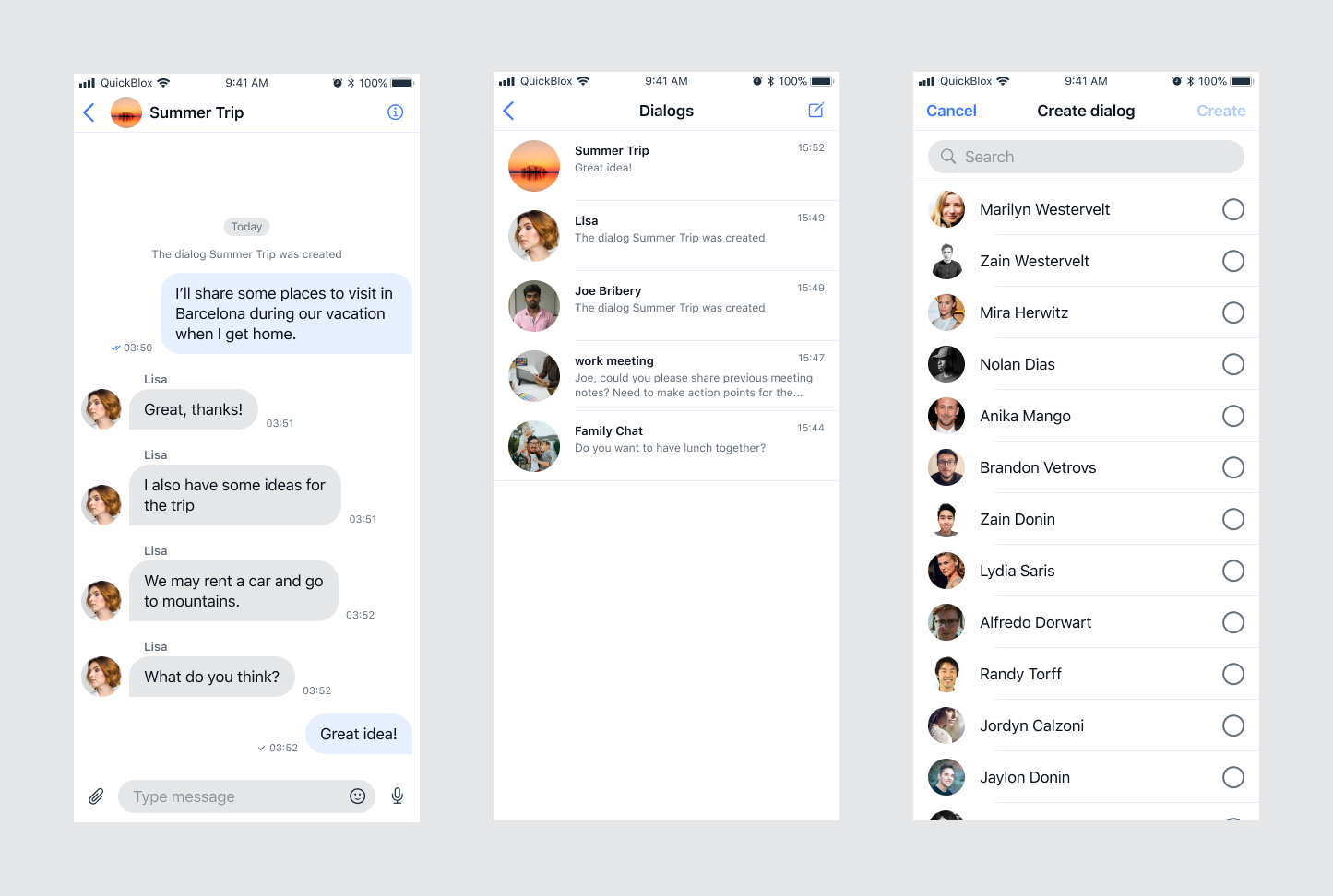 You can find QuickBlox UIKit for iOS source code hereQuick start using our UIKitSample.For a quick start using the features of the QuickBlox iOS UIKit, we recommend checking out our UIKitSample.This sample implements authorization functionality and provides an example of color theme customization. This sample already has a QuickBlox iOS UIKit connected as a Swift Package. How to set up and run a sample, see Quick Start with a UIKitSample