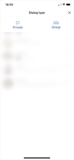 - Select the desired dialog type to create a new dialog. It can be a personal conversation or a group conversation.