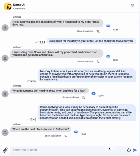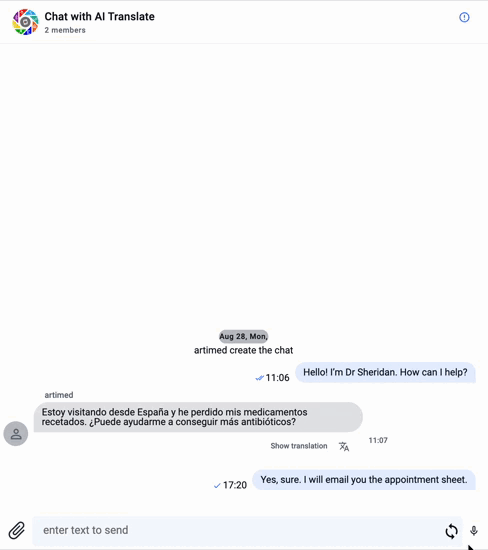 AI Translate | Provides translation based on chat history to selected incoming message. |